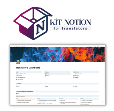 Notion for Translators is a set of templates that help you organize your translation business. With templates for projects, resources, finances, and more, you'll have everything you need in one place. It includes a rate calculator to make pricing easy, and free personal site and portfolio templates to showcase your work. Try it today and run your business like a pro.
