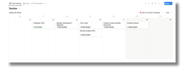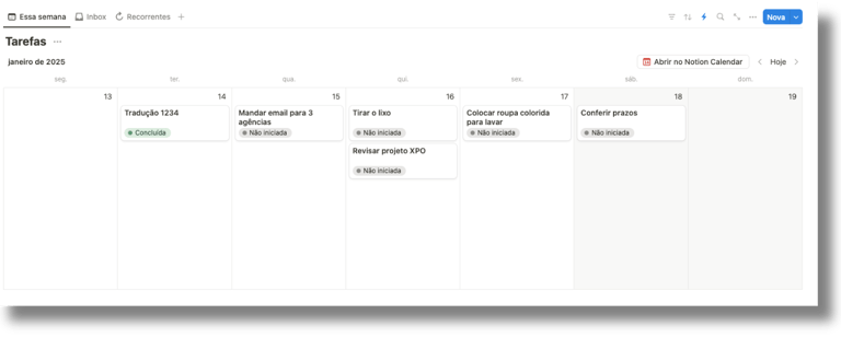 Organização das tarefas da semana, incluindo tarefas recorrentes (deixe que o Notion te lembre das tarefas repetitivas!)