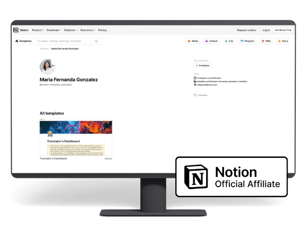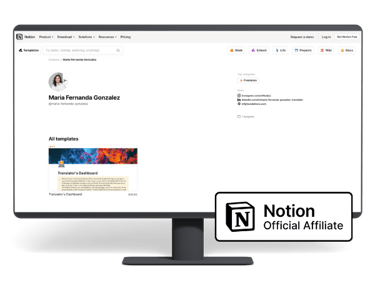 A versão em inglês desses templates passou pelo crivo da própria Notion e é o único conjunto de templates especificamente para tradutores à venda dentro do próprio site da empresa!